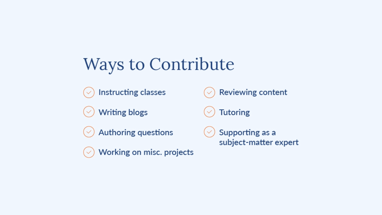Most professionals have more than enough expertise in their field to become a course contributor. Most of our contributors have been working with us for more than 5 years, and some have been contributors with us for more than 10 years!